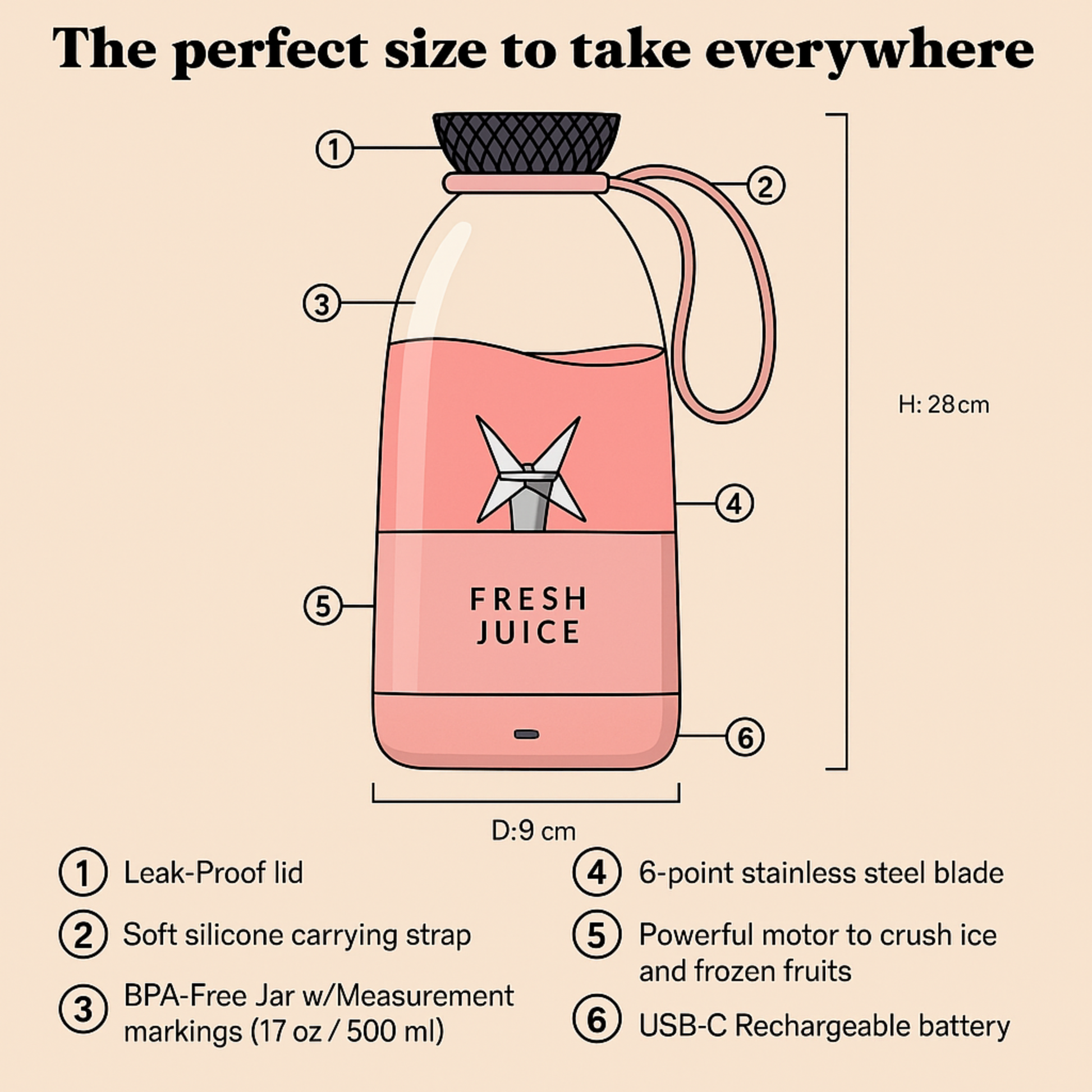 If you’re looking for a portable smoothie blender, electric juice blender, or travel blender with powerful blades, this is the perfect choice.